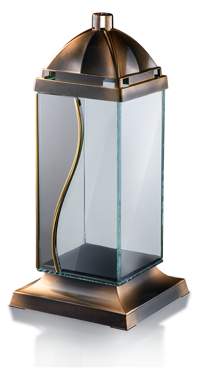 Klasyczna latarenka w złotej odsłonie. Subtelne nakrycie wraz z prostą podstawką tworzą niezapomnianie połączenie. Spód lampionu zwieńczony został szkłem o głębokiej czerni idealnie harmonizując z cieniowaną złotą podstawą. Uzupełnieniem i koniecznym dodatkiem do lampionu stała się finezyjna „fala”, całkowicie ręcznie wykrojona ze szkła lustrzanego. Jej krawędzie przyozdobione zostały metalem w postaci ołowiu, którego odcień dopasowany jest do wersji kolorystycznej lampionu. Wprowadzenie detalu „fali” przełamuje klasyczną linię latarenki, dodając szlachetności całej kompozycji. Szeroka, stabilna podstawa oraz spory ciężar gwarantują stabilne przyleganie lampionu do podłoża. Przemyślane zestrojenie plastykowego daszku do szklanych boków, umożliwia bardzo łatwe umieszczenie wkładu oraz bezkolizyjne przykrycie, praktycznie całkowicie minimalizując ryzyko zdmuchnięcia lub zsunięcia się daszku przez nagłe podmuchy wiatru.